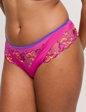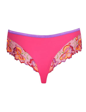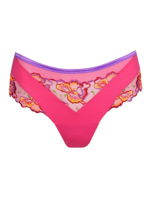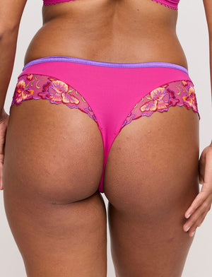 Add a pop of colour to your lingerie drawer with the Primadonna Devdaha Luxury Thong in Very Berry. Featuring a fuchsia base playfully accented with delicate embroidery in orange, green, and lilac, this thong blends vibrant hues with a flattering fit designed to make you feel confident and cheeky all day long.