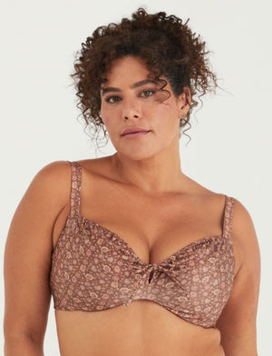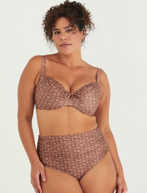 Introducing the Dolly Bikini Top from Marvell Lane in the bohemian Wander Print! This balconette-style top offers excellent support, shape, and lift with its fully underwired design. The drawstring neckline adds a touch of femininity and allows for customizable coverage.