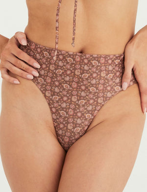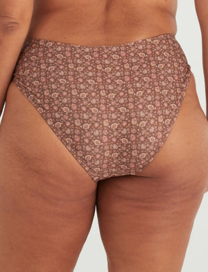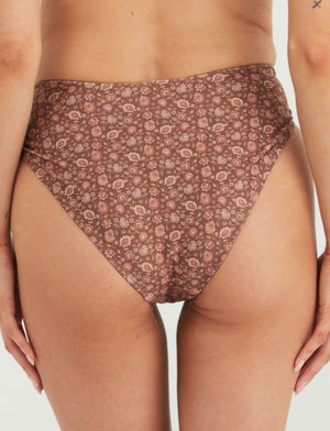 Marvell Lane's Harper Mid Rise Brief in the bohemian Wander Print! Designed for curves, the flattering twist on 90's midi briefs sits just above the lower belly area while minimising the cutting caused by traditional hipsters. The high-cut also elongates the legs. Fun, fresh, and comfortable - get yours now!
