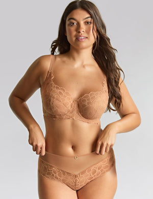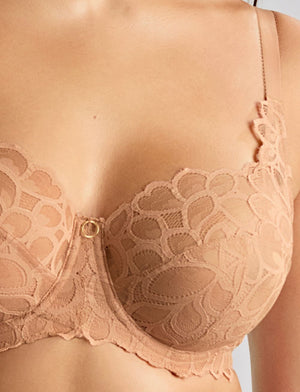 Allure from Panache lives up to its name, flaunting a contemporary design and a supportive full cup that rounds and lifts the breasts. The captivating honey petal stretch lace over the top of the cup provides a smooth finish.