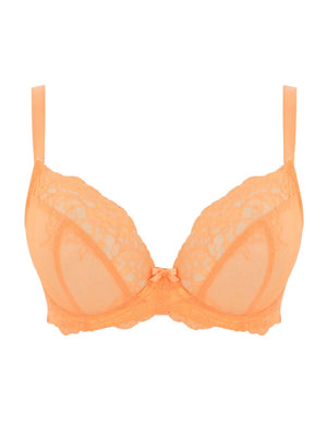 The Panache Ana Plunge Bra is a beautiful style featuring delicate stretch lace! The lace overlay creates an almost-seamless look beneath clothes, making it a great option for every day wear, or special occasions. Giving off ultimate summer vibes in the limited orange colour, Peach Melba!