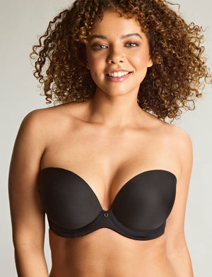 The Faith Moulded Plunge Strapless Bra by Panache is the perfect strapless option for every bra-drobe! It features a deep, plunging neckline, smooth moulded cups and detachable straps for a multiway option-available in a classic 'noir' colourway.