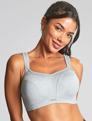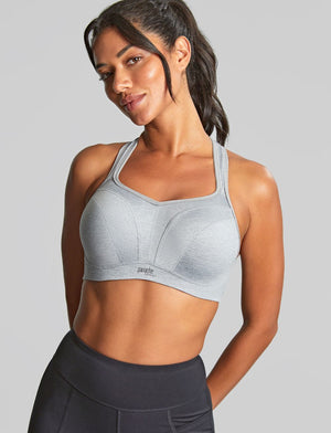 The Panache Sports Bra is designed with adjustable straps, a j-hook, soft moulding and strong underwire for supreme support. The Impact Level is extreme so you can feel confident participating in high impact activities. Available in Grey Marl