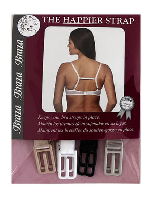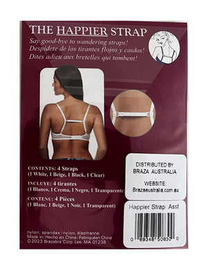 Braza's Happier Straps are perfect for you if you find your bra straps are always sliding off your shoulders. Includes 4 straps: white, black, beige and clear to wear with all your bras and clothing.