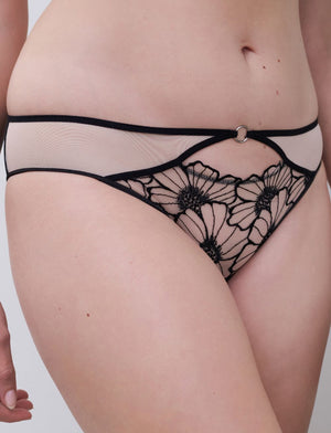 Get the matching brief to the Chantelle Pulp Lush collection. With a contrasting black daisy embroidery and delicate satin, on a soft pink background.