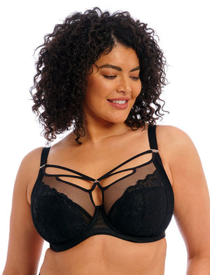 The Elomi Brianna Plunge Bra features very modern, strappy detailing at the front and a deep plunge without sacrificing comfort. The perfect addition for any woman wanting to update a staple black bra!