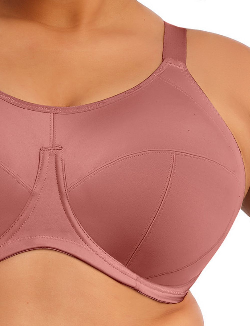 The Elomi Energise Multiway Sports Bra in the soft Rosewood shade! This sports bra is especially great for a fuller bust as it provides total coverage and completely encapsulates your bust, which is what makes this a really great option for high impact activities. Designed for the active full-figure woman.