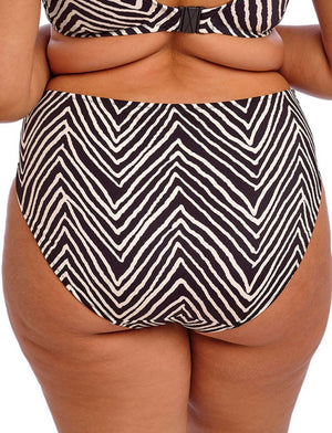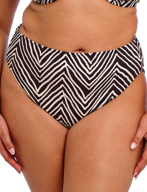 Complete the look with the Elomi Fiji Falls Mid Rise Bikini Brief in Black. Featuring a playful zebra-inspired print and a flattering high waist cut, this brief combines bold style with comfortable support for all-day confidence.