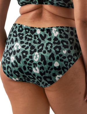 Get ready to make a splash in the Elomi Jungle Bay collection. This Mid Rise Bikini Brief completes the Jungle Bay set and is the perfect for your beach or pool style! With its eye-catching design in animal print, you're sure to turn heads whenever you wear this fabulous set.