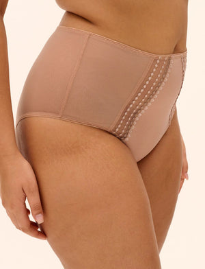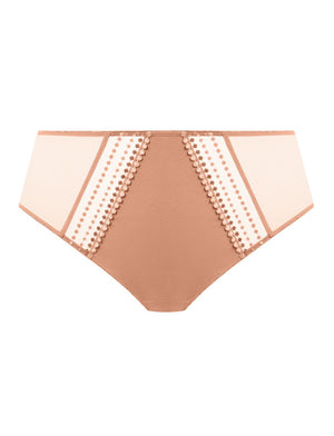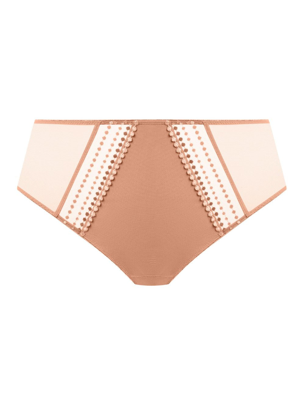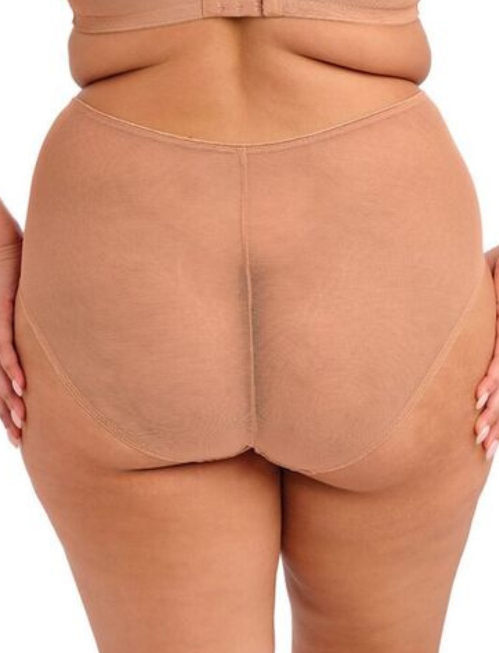 Elevate your lingerie collection with the Elomi Matilda Full Brief—where cheeky charm meets refined style. This high-waisted essential showcases stunning two-tone beaded lace embroidery in a classic Cafe au Lait colourway, while the daring sheer back adds just the right dose of playfulness. With a double layer of stretch mesh adds a touch of modesty to both the front and back.