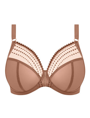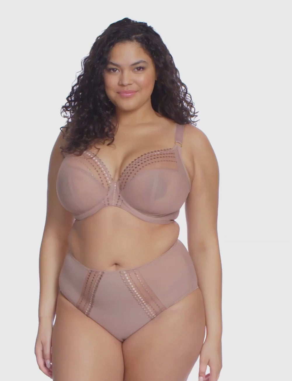 The Matilda plunge bra is so popular, fashion colours dropping sell fast. The Matilda will provides not only a really great lift, you will also feel secure and held in. That doesn't always happen with a plunge. Somehow Elomi have managed to create a plunge that separates and holds everything in place. Meet Praline a slightly richer hue with the two toned beaded lace embroidery and opulent silver ring detailing. Just divine!