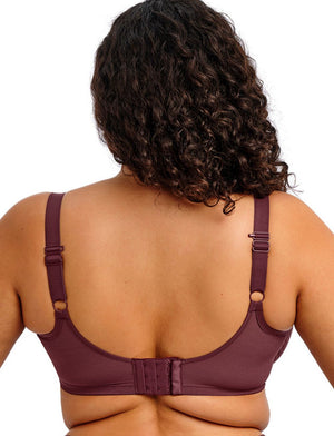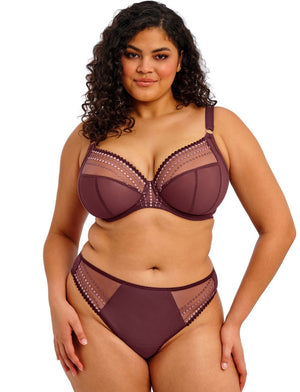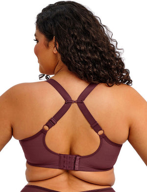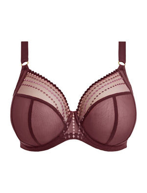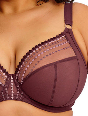 The Matilda plunge bra is so popular, fashion colours dropping sell fast, this sweet Sugarplum colourway dazzles with a ombré of soft metallic embroidery, flowing from deep burgundy to delicate blush pink. The Matilda will provides not only a really great lift, you will also feel secure and held in. That doesn't always happen with a plunge. Somehow Elomi have managed to create a plunge that separates and holds everything in place.