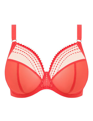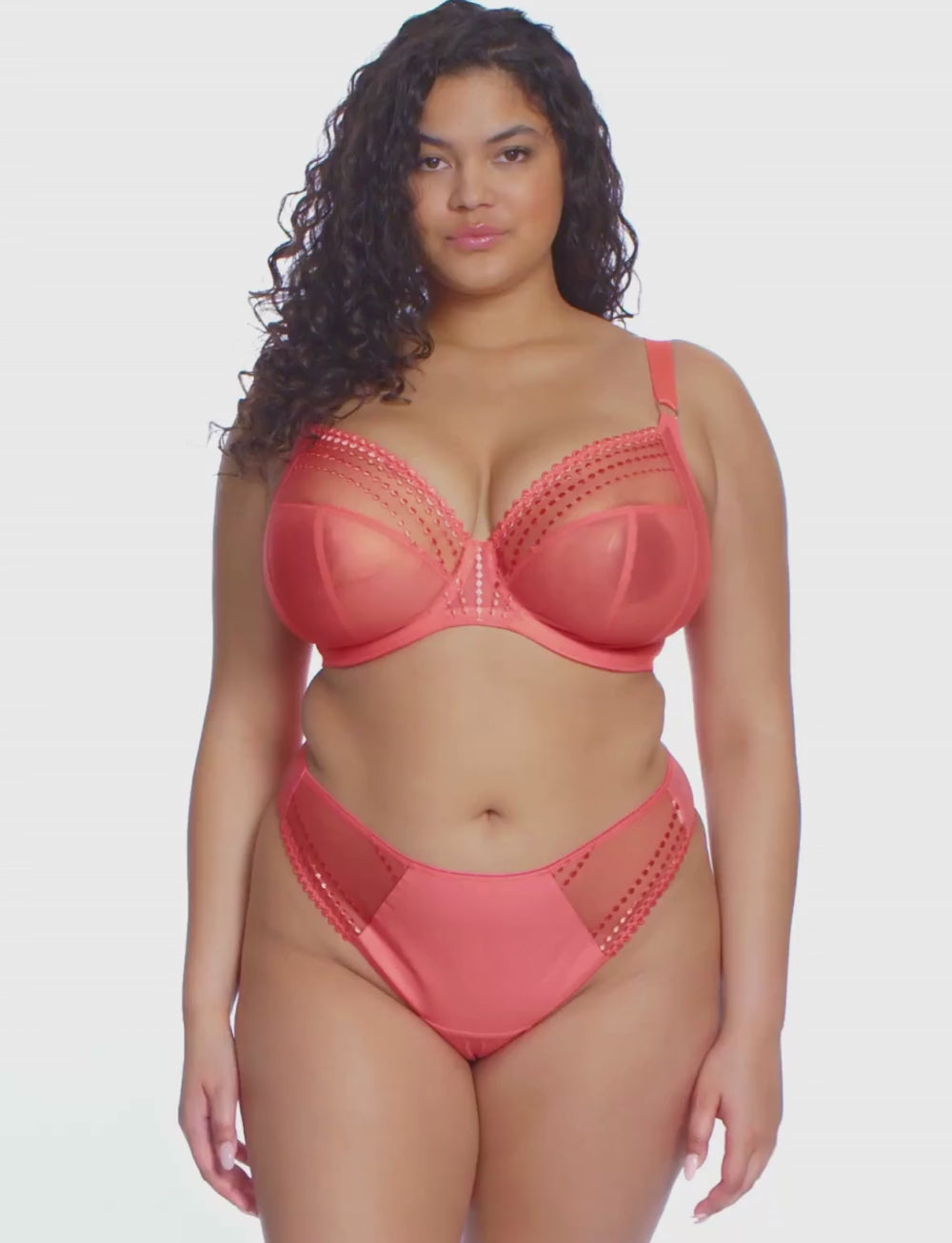 The Matilda plunge bra is so popular, fashion colours dropping sell fast, this stunning Sunset shade pops with playful embroidery in a warm coral gradient. The Matilda will provides not only a really great lift, you will also feel secure and held in. That doesn't always happen with a plunge. Somehow Elomi have managed to create a plunge that separates and holds everything in place.