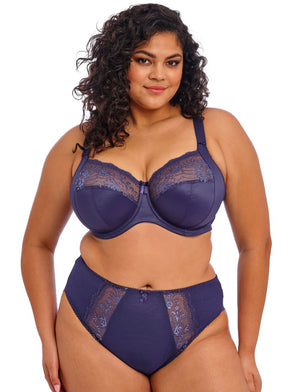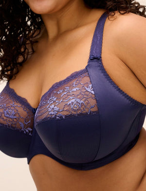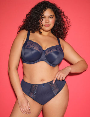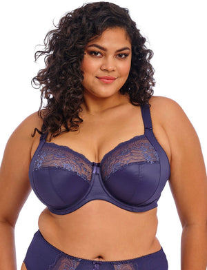 Get ready to feel supported and stylish with the Elomi Morgan UW Bra. The stretch lace cups and side support panel provide a flattering forward shape, while the hand made bow adds a delicate touch. Perfect for everyday wear, this bra is both comfortable and chic, now in the blue shade of Midnight!
