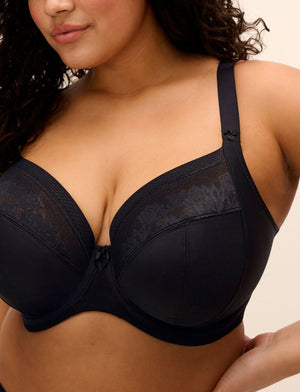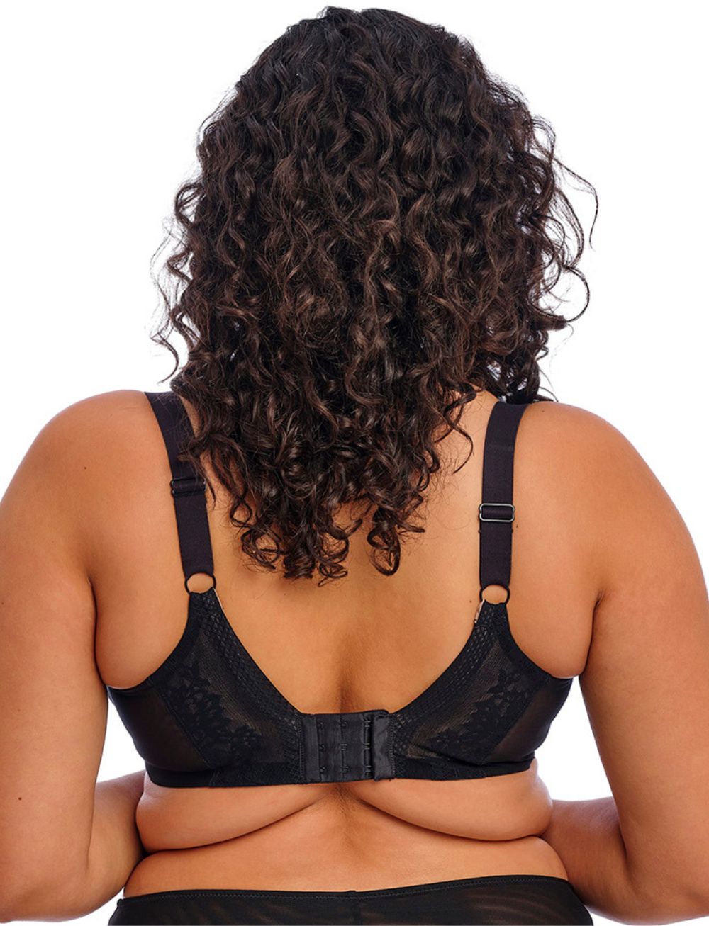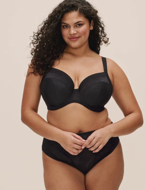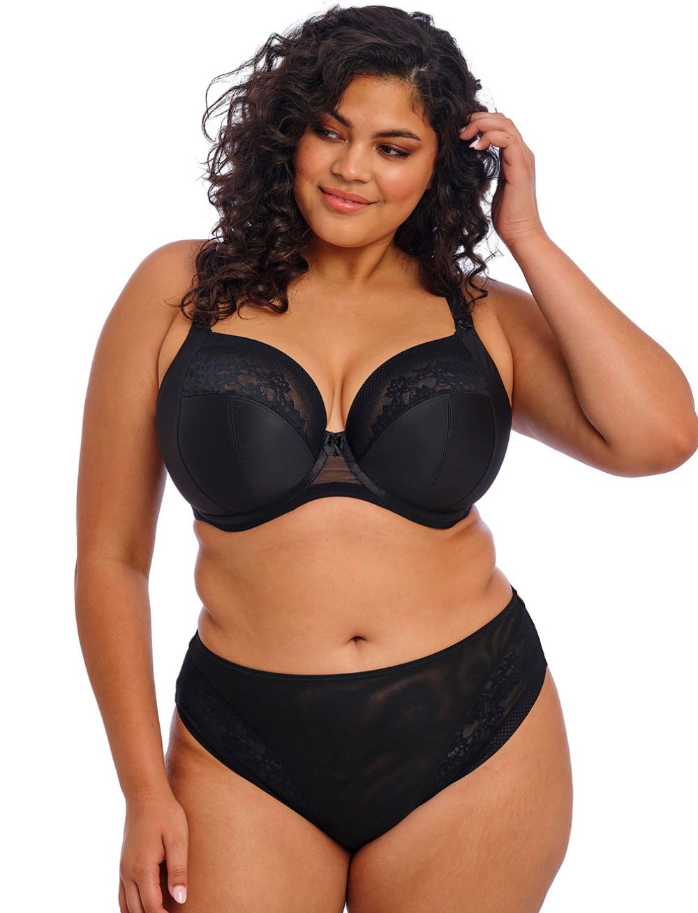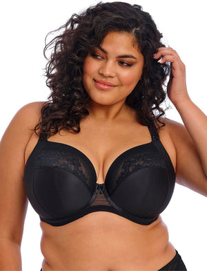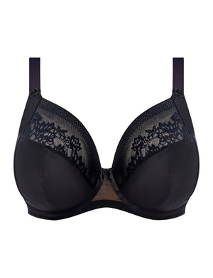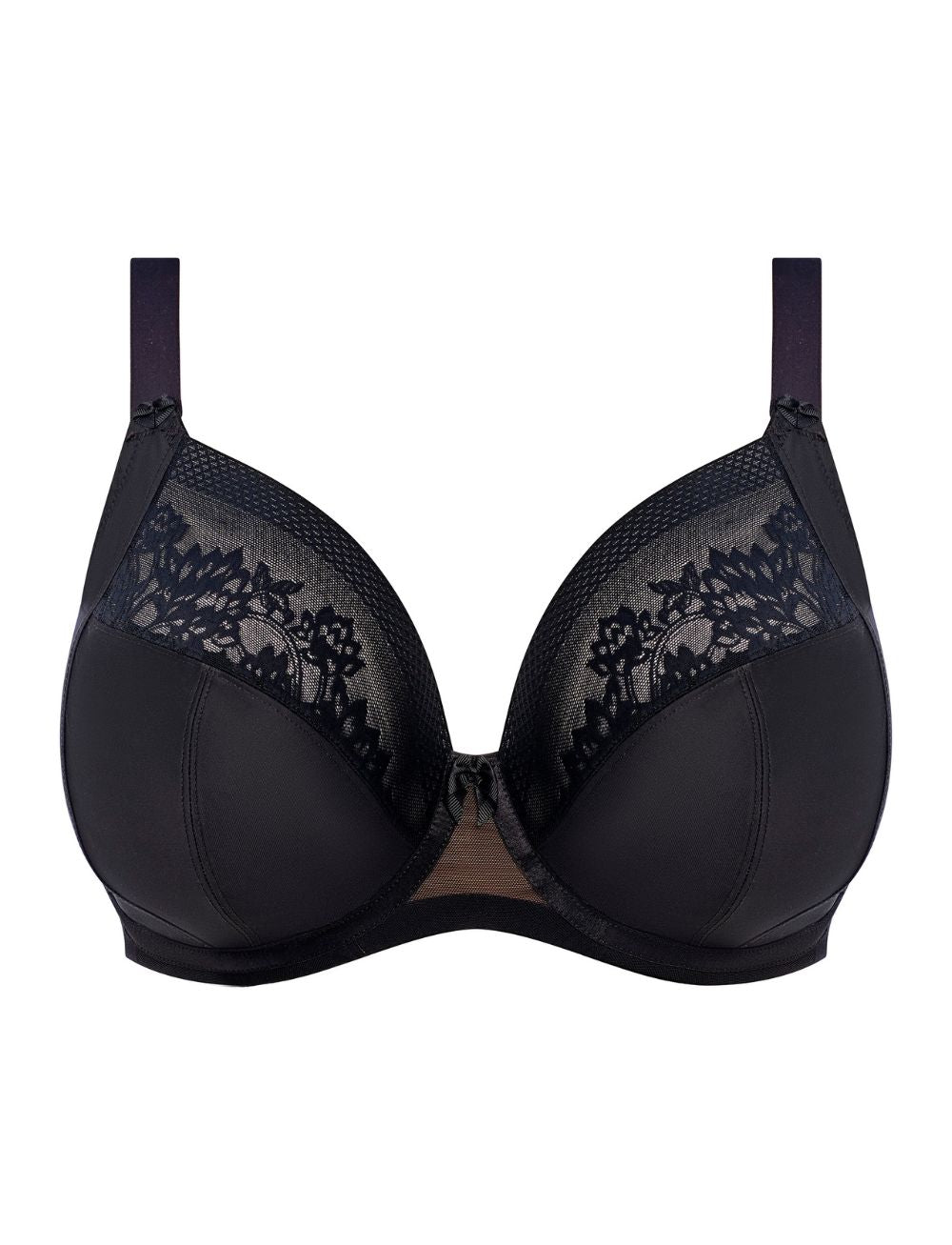 Introducing the Elomi Nerina Stretch Plunge Bra in the classic black! It's made with a strong stretch lace that's silky smooth, and enhanced with a trendy floral pattern for a fresh twist. With encased underband elastics for comfy non-rolling support and a chic back-smoothing design.