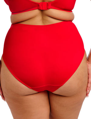 The Elomi Plain Sailing Full Bikini Brief in the res hot Lava tone, features a gathered front design paired with a powernet tummy panel that smooths and shapes for a confidently flattering silhouette. Pair with the matching Bikini tops from the Plain Sailing collection, this bikini brief adds a splash of style and a boost of confidence to your swimwear collection.