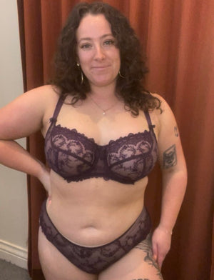 With romantic and delicate styling, the Louise Bra is an all-over lace embroidered bra with guipure lace across the neckline. This low cut, underwired style is perfect for those looking for an elegant yet supportive piece. Now in Cassis, a deep purple shade!