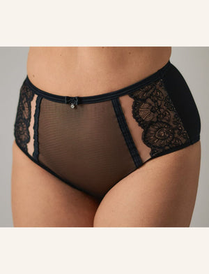 Match the Bella bras with these high briefs for a flawless combo! With alluring black lace and a nude-lined front, you'll be feeling feminine and confident.