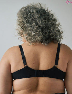 Introducing Bella in Ewa Michalak's S style Bra - the perfect combination of comfort and style. With padded balcony cups, this bra offers a rounded shape and dramatic lift, giving you a flattering silhouette. The nude cups and black lace overlay add a touch of sheer elegance to your look. If you love the Ewa Michalak Szykus bra, you will love the new Bella!