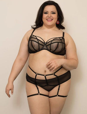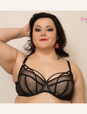 Introducing the Ewa Michalak Fetysz Czarny SMN Bra Black - sheer and sexy, this bra lifts and shapes your bust for a round and lifted look. Made with comfortable, sheer but stable tulle and extra strappy details for your new go-to favourite.