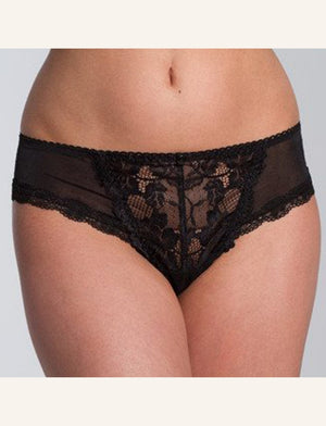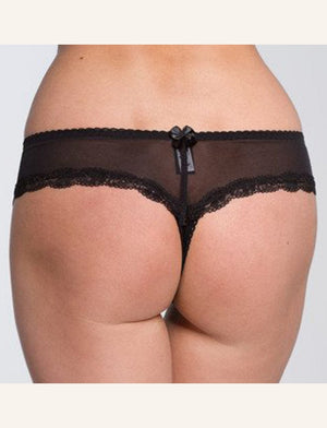The coordinating thong for the Szykus 3D Padded Bra, featuring a gorgeous lace front, scalloped trims and a cheeky mesh back-available in black.