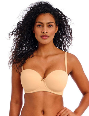 Freya Deco Strapless Bra. Stylish functionality for a flawless shape under your strapless fashion items. The moulded plunge suits the most figure-hugging top & the ultra-soft fabric is totally seam-free.