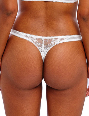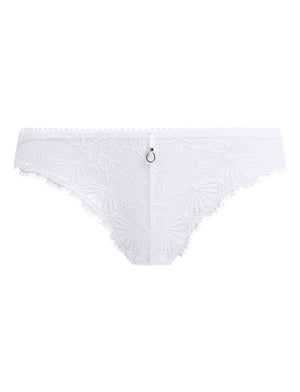 The Freya Fascinate Thong in White is a playful addition to your lingerie drawer. Its beautiful eyelash edge lace and minimal rear coverage offer a sweet, cheeky look in crisp white.