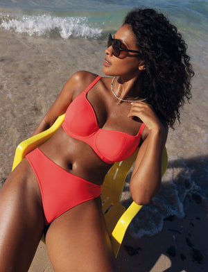 Experience swimwear elegance with the Jewel Cove Sweetheart Padded Bikini Top in the stunning coral colour, Plain Sunset. This timeless bikini top must-have, boasts softly padded cups for great shaping and support, along with a sweetheart neckline that provides a flattering lift and rounded shape.