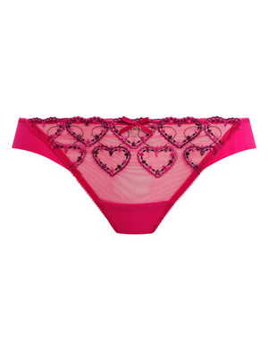 The Freya Laurine Brazilian Brief in Raspberry offers a sexy, playful look with its folded-over leg edges that keep show-through to a minimum. The delicate love heart embroidery across the centre adds a flirty, charming touch, making this brief as fun as it is flattering.