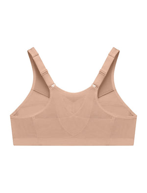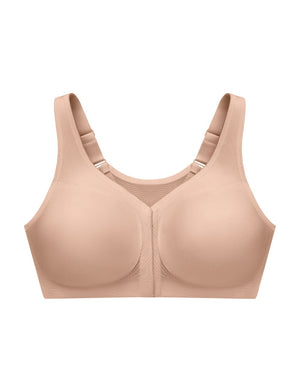Improve your posture all while feeling fully supported with Glamorise's MagicLift Front-Closure Posture Back Bra in café! This wirefree bra features racerback and internal criss-crossed panels that provides back and posture support.