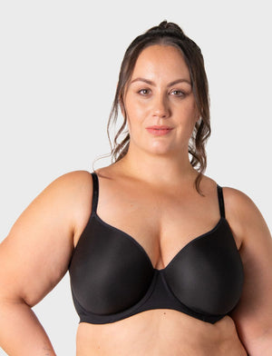 The Hotmilk Evolve Effortless T-Shirt Bra in timeless Black, has lightweight spacer cup paired with flexiwires to deliver a seamless, lifted shape that stays invisible under your favourite tops. With 3/4 coverage, fully adjustable straps, and a versatile cross-back strap option, this bra adapts to keep up with your day.