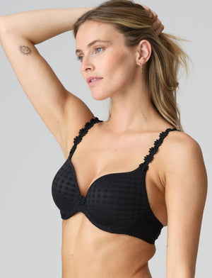 Embrace the everyday necessity of the Marie Jo Avero Padded Heartshape Bra in timeless Black. Its heart-shaped neckline and padded cups provide a stunning look, while playful embroidered daisies and convertible straps add a fun and versatile twist. This bra is sure to become your new go-to!