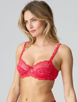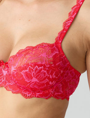 The Marie Jo Manyla Full Cup Bra in Pixie Red is a playful and colourful addition to your lingerie collection. With perfectly light weight red and pink lace, this bra adds a touch of fun and flair to your everyday look.