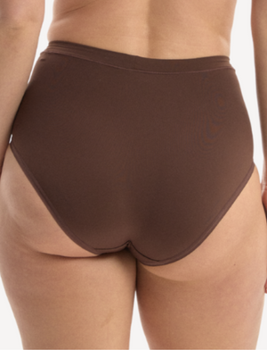 Meet Nala Bio High Waist High Leg Brief in Chocolate Mousse! With a perfect high waist and soft band, it also flaunts high cut legs to showcase your assets. Made from Nala's silky smooth bio butter, this brief is a must-have for your wardrobe.