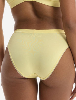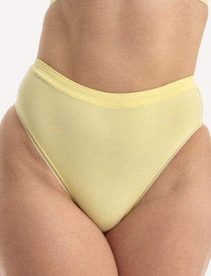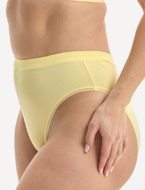 The Nala Bio High Waist High Leg Brief in Banana Split features a flattering high waist and soft band to hug your curves comfortably, while the high cut legs add a cheeky, confident flair. Crafted from silky smooth bio butter fabric, this brief feels like a dream against your skin.