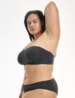 Introducing the Nala Strapless Underwire Bra in the black shade of Licorice! This bandeau style strapless is a seamless design that provides support and comfort without padding and versatile with the option to add straps. Get ready to complete any outfit!