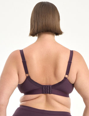 The Nala Support Wirefree Bralette...no wire, full lined supportive cups and free from harmful chemicals and toxins. It has it all! Designed to sculpt and enhance your natural shape, perfect for everyday uplift or lounging around. Get yours now in the limited deep purple colour - Mulberry!