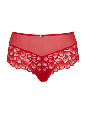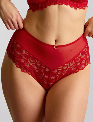 This elegant petal lace brief is the perfect addition to any lingerie collection! With a high waist silhouette and intricate lace details, this brief is both sophisticated and timeless. Designed with meticulous attention to detail, the Allure Deep Brief in the hot True Red colourway, is a must-have for any woman.