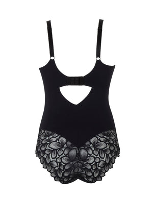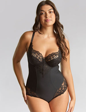 Get ready to turn heads with the Panache Allure Full Cup Body in Black! This stunning bodysuit pairs eco-friendly recycled lace with silky-soft microfibre for a feel-good, look-good combo. Lined to smooth and shape, it’s your secret weapon for a flawless silhouette under any outfit.