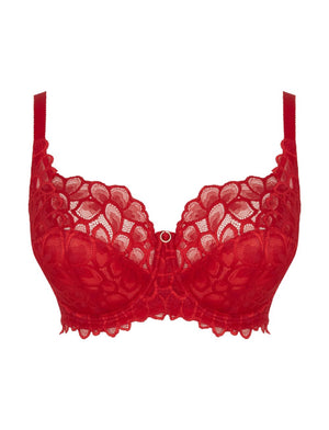 Allure from Panache lives up to its name, flaunting a contemporary design and a supportive full cup that rounds and lifts the breasts. This hot True Red shade has petal stretch lace over the top of the cup that provides a smooth finish.