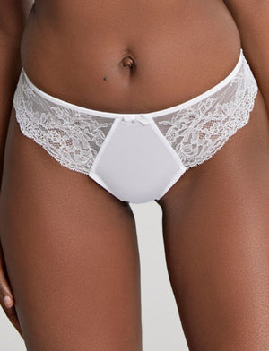 Matching lace thong to the bestselling Panache Ana Plunge Bra in the classic crisp white! This lacy number will appear smooth under clothing and make you feel comfortable and special all day long.