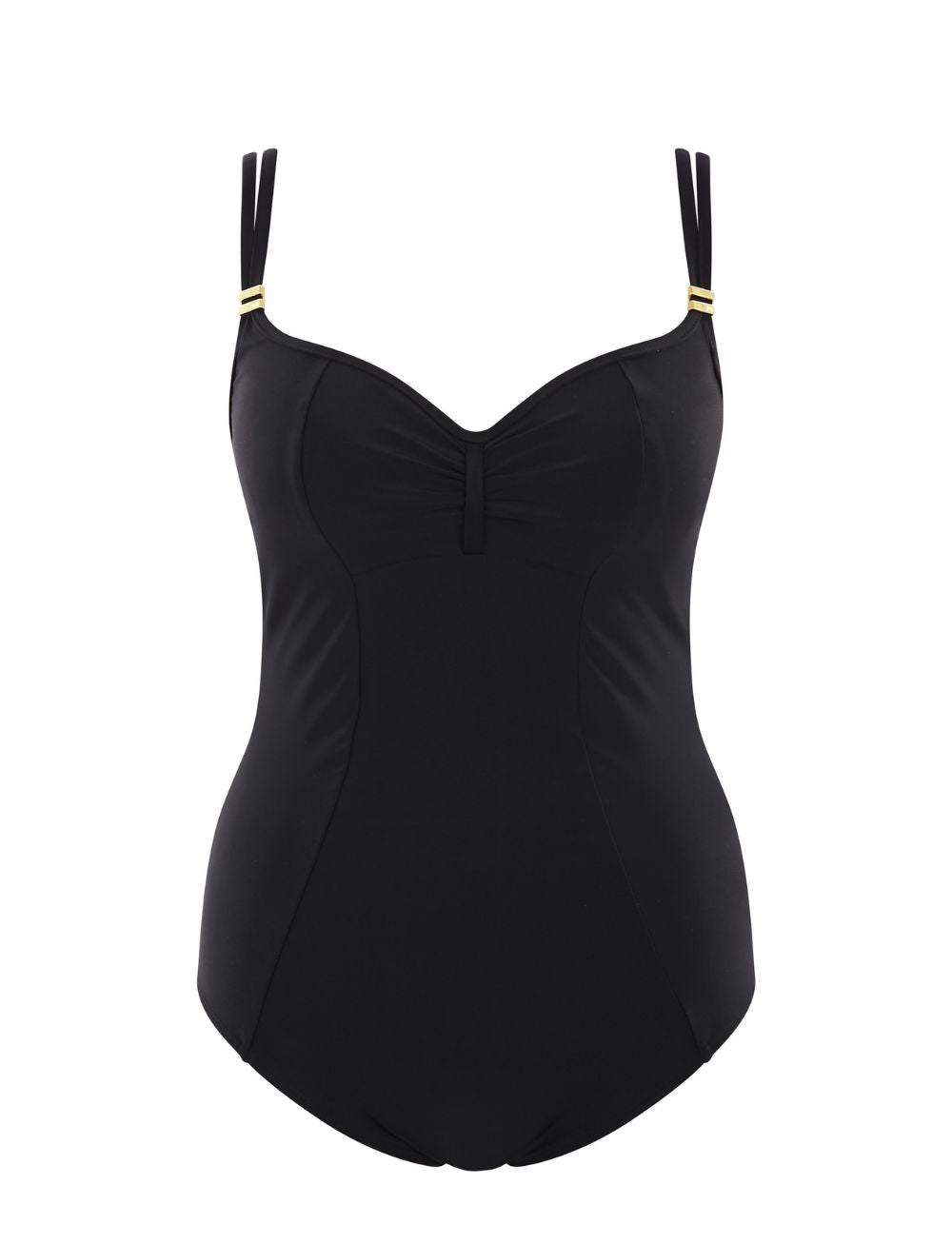 The Anya Riva collection by Panache flaunts a modern yet glamorous look, showcasing a range of timeless styles like the Balconette Swimsuit. This classic swimsuit features fashionable gold detailing and trendy gather details across the bust, while flattering your figure and providing modest coverage!