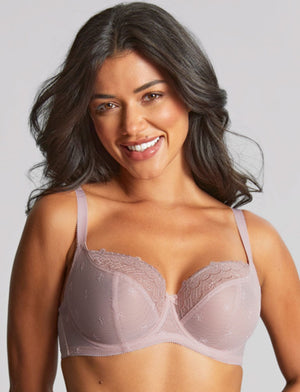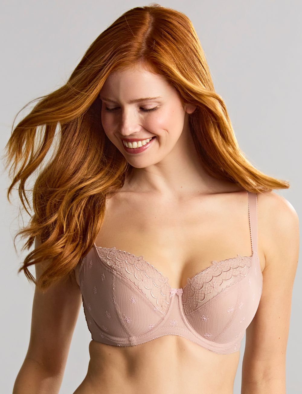 Transform your everyday wear with the Panache Blossom Balcony Bra in soft Taupe. This luxe core collection piece combines delicate pink embroidered daisies with rigid top lace for a secure, sculpted fit. Playful yet dependable, it delivers the perfect balance of flirty femininity and all-day comfort—because you deserve a touch of elegance in every moment.