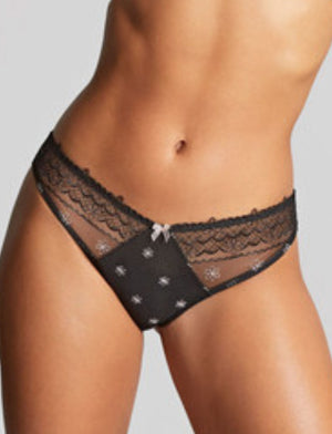 Elevate your underwear game with the Panache Blossom Brazilian Brief in Black. This piece boasts pretty pink embroidered daisies for a fun twist. Embrace your playful and flirty side!