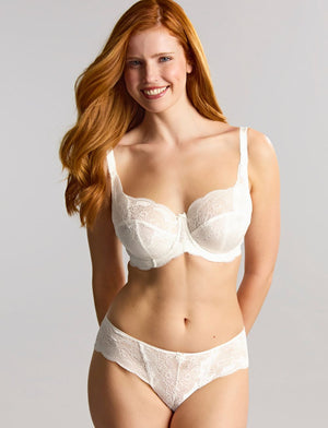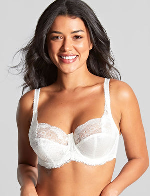Experience the must-have addition to your lingerie wardrobe with Panache's iconic Clara full cup bra! Vintage glamour is brought to life through luxurious lace and an enchanting but subtle fusion of two ivory shades. Clara offers everyday comfort and shape combined with sophisticated style and glamorous detailing.