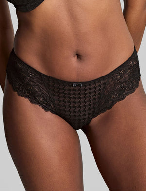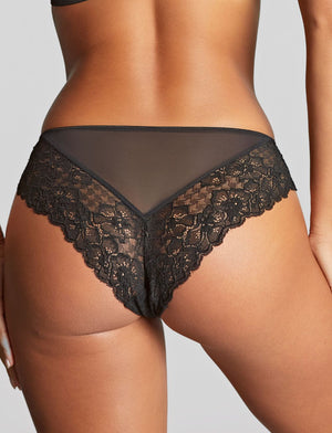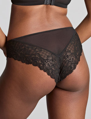 The matching Brazilian Brief to the Panache Envy collection, this brief in the timeless black combines edgy houndstooth print with delicate floral lace for a unique look. With cheeky coverage and stretch lace for a seamless fit, these briefs are sure to make a statement.