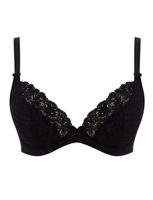 Introducing the newest addition to the Panache Envy family - the Envy Plunge Bra! With the iconic houndstooth pattern and reliable support, this bra features a low v-front design for a plunging silhouette. Get the plunge effect without compromising on comfort! Order today in classic Black!