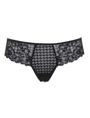The Panache Envy Thong is sexy yet comfortable. With a beautiful houndstooth pattern fabric and soft lace over the hips, making the perfect matching set paired with the Envy Full Cup Bra - now available in a classic, Black colourway.