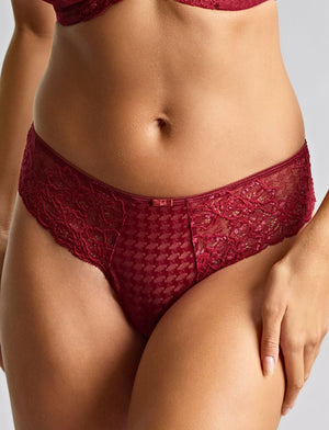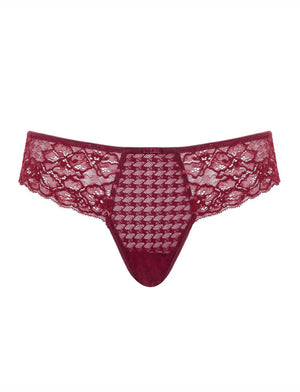 The Panache Envy Thong is sexy yet comfortable. With a beautiful houndstooth pattern fabric and soft lace over the hips, making the perfect matching set paired with the Envy Full Cup Bra - limited time in Sparkling Cherry