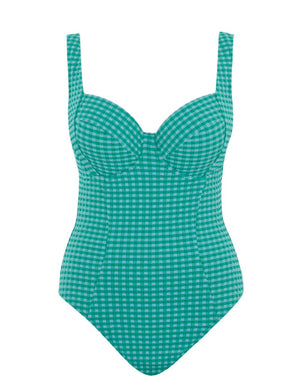 Revamp your swimwear collection with the Panache Gingham Paloma Balcony Swimsuit! This chic one-piece is designed to boost your confidence and empower you with every wear. Its balcony design flatters while the intricate fresh green gingham pattern adds a touch of elegance to your beach look. Timeless, stylish, and comfortable - this swimsuit has it all!